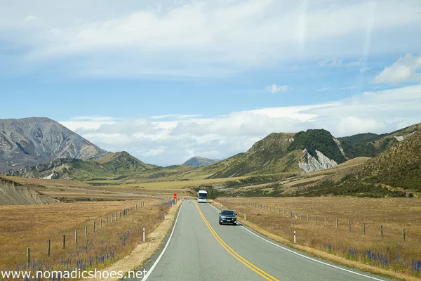 Po nákupech vyrážíme po cestě číslo 73 směrem k západnímu pobřeží do národního parku Arthur Pass. Z Christchurch by to mělo být asi 150 kilometrů. První polovina cesty vede po rovině, všude jsou pastviny a ovce.