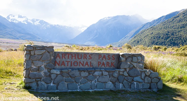 Zbývá nám posledních 50 kilometrů do vesničky v národním parku Arthur Pass, které nám trvají díky častým vyhlídkám na hory a řeky kolem nás podstatně déle, než jsme plánovali. Po vjezdu do vesničky se jako mávnutím proutku mění i počasí a najednou je o deset stupňů míň. Jsme v nadmořské výšce 750 metrů. Nálezáme informační centrum a kemp, umístěný mezi ním a železnični tratí, po které celkem v pravidelných intervalech jezdí nákladní vlaky Kiwi rail. Snad nebudou jezdit přiliš často i v noci! U budovy, která slouží jako veřejná kuchyňka, je schránka, do které hážeme sáček s poplatkem za kemp - 16$. Poplatek se liší podle typu kempu, které zajišťuje DOC - Department of Conservation.